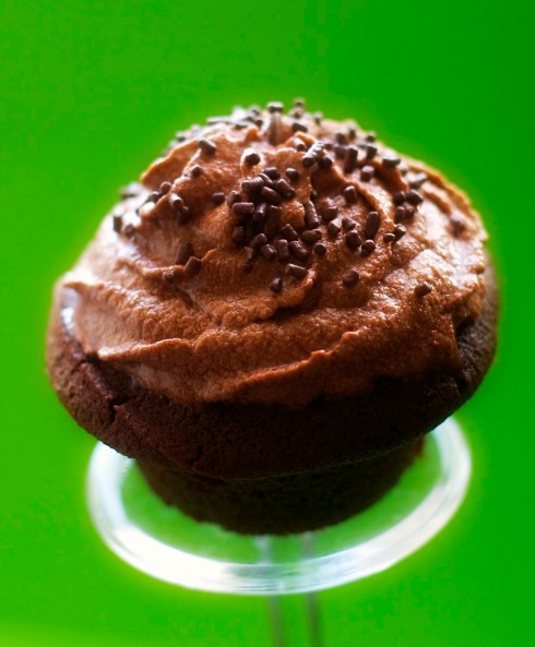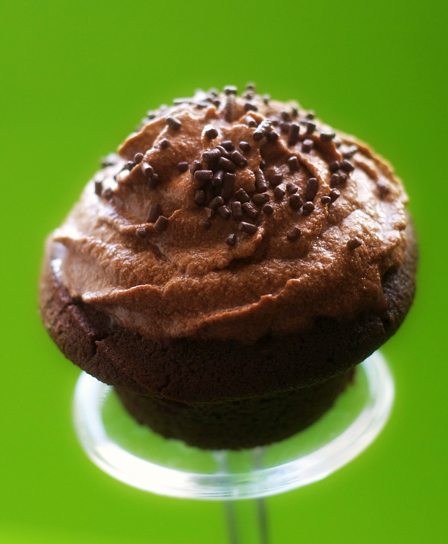 Mr. Donut is currently in first place in his NCAA bracket at work, and I’m hoping that these chocolate cupcakes will go all the way.  However, it’s all up to you and my many friends and family to make the final decision.  Like the games this weekend, I think it’s going to be close and unpredictable.  Mr. Donut is still in shock over the University of Pittsburgh upset.